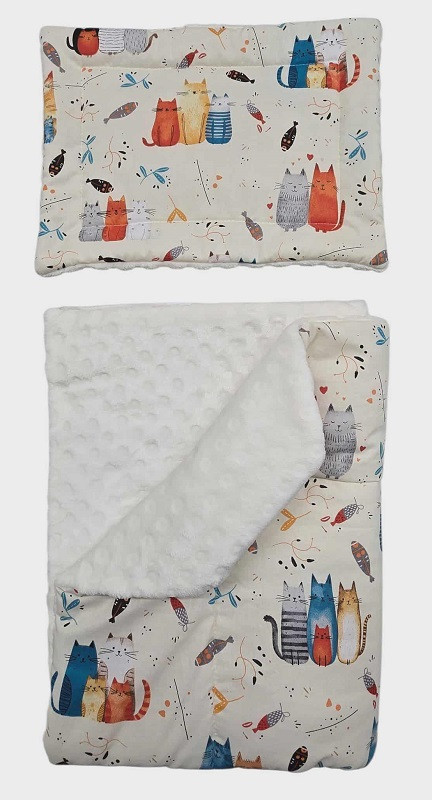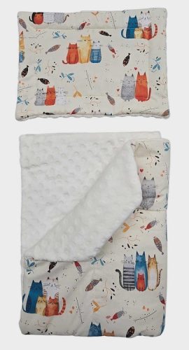2 részes Bébi ágyneműgarnitúra 70x90 - Narancs cicás-Krém wellsoft