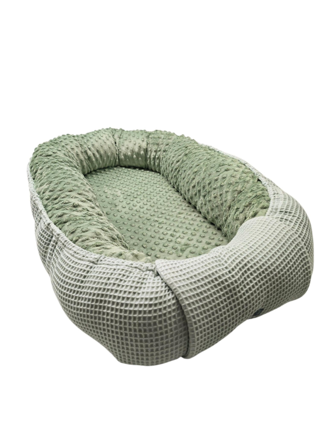 Kellemes oliva színű babafészek puha waffle és wellsoft anyagból.