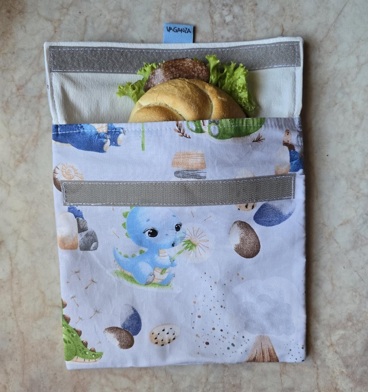 Ebben a szendvicstasakban kényelmesen elfér 2 szendvics.