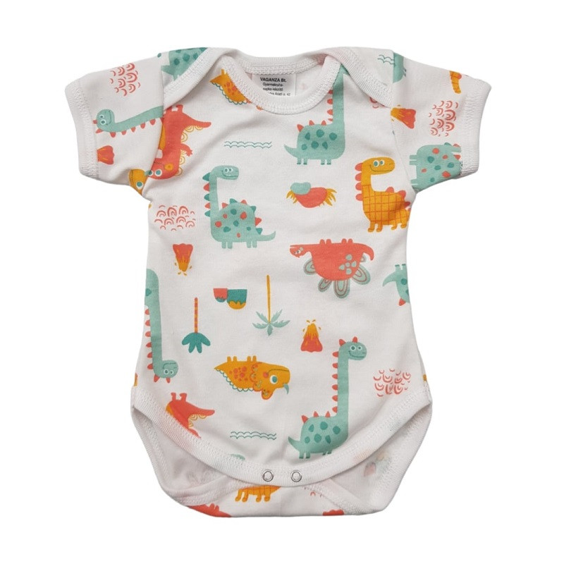 Rövid ujjú, vállon békanyakas, lábak között patentos megoldás a könnyebb használatért.