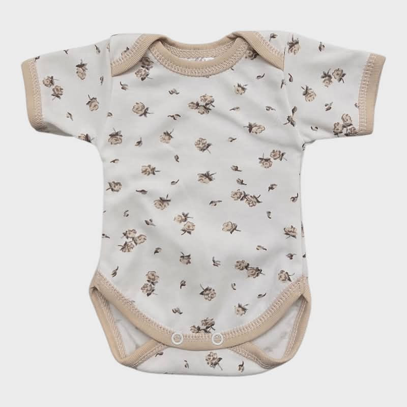 Rövid ujjú, békanyakú body - Drapp Rózsák/62
