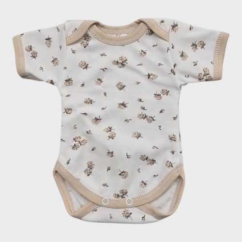 Rövid ujjú, békanyakú body - Drapp Rózsák/80