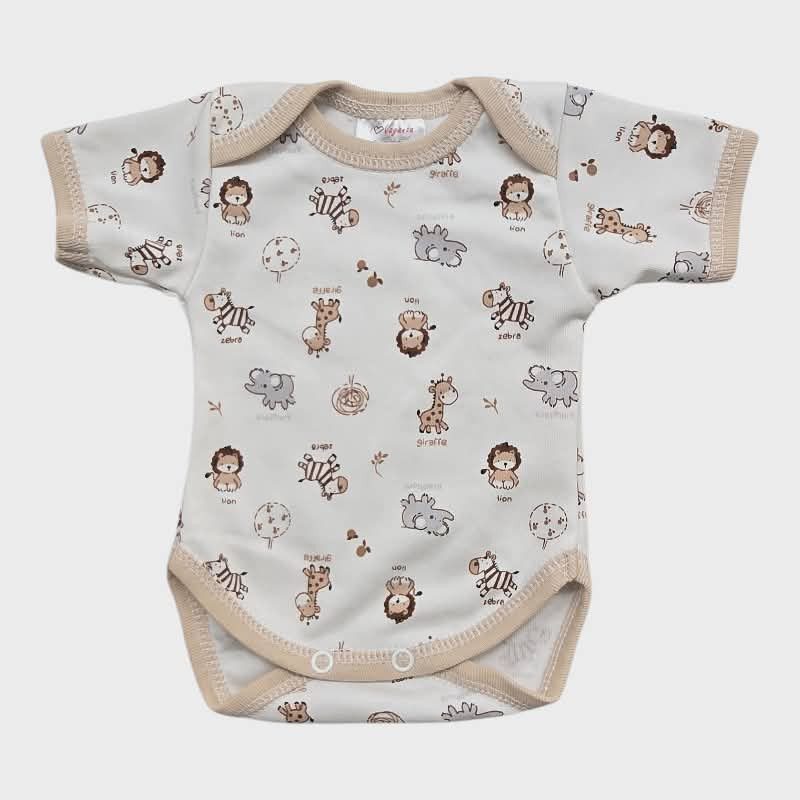 Rövid ujjú, vállon békanyakas, lábak között patentos megoldás a könnyebb használatért.