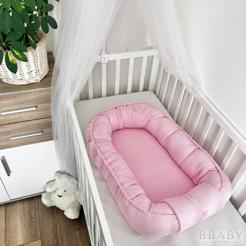 Babarózsaszín waffle babafészek - 100% pamut, légáteresztő, I. osztályú babatextil